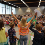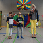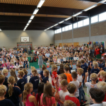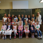 Am Samstag, den 5. August 2017, haben wir unsere Erstklässler in einer Feierstunde eingeschult. Im Anschluss an den offiziellen Teil, durch den die Rektorin Frau Tillmann-Schreiber führte, moderierten Julia und Jonathan die verschiedenen Aufführungen aus den 2., 3. und 4. Klassen. Anschließend begann für die Erstklässler der 1a und 1b mit der ersten Unterrichtsstunde der Ernst des (Schul-)Lebens.